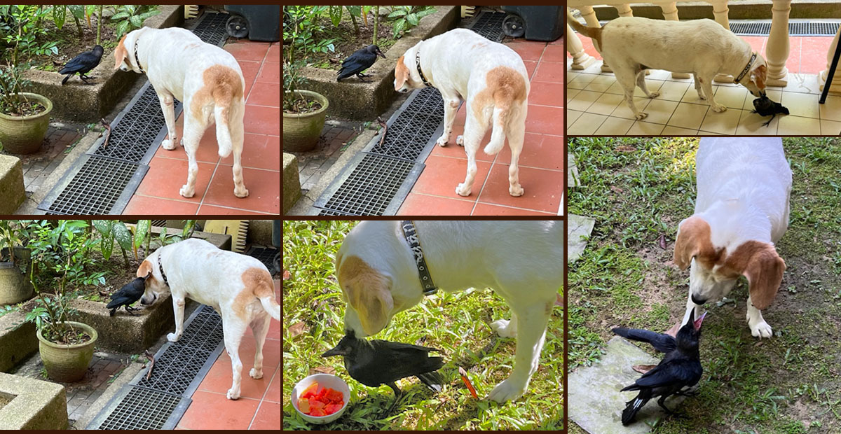 Every hop of the bird put the dog on high alert and the first time she flapped her wings Nala went berserk and tried to catch her but she soon learned that the strange being was friend not foe and her mothering instincts kicked in! Salima was totally unfazed by the dog and ignored her except when she wanted food, then she would open her mouth wide and caw at the dog, or bite her ears, dear sweet Nala forever perplexed, indulgent