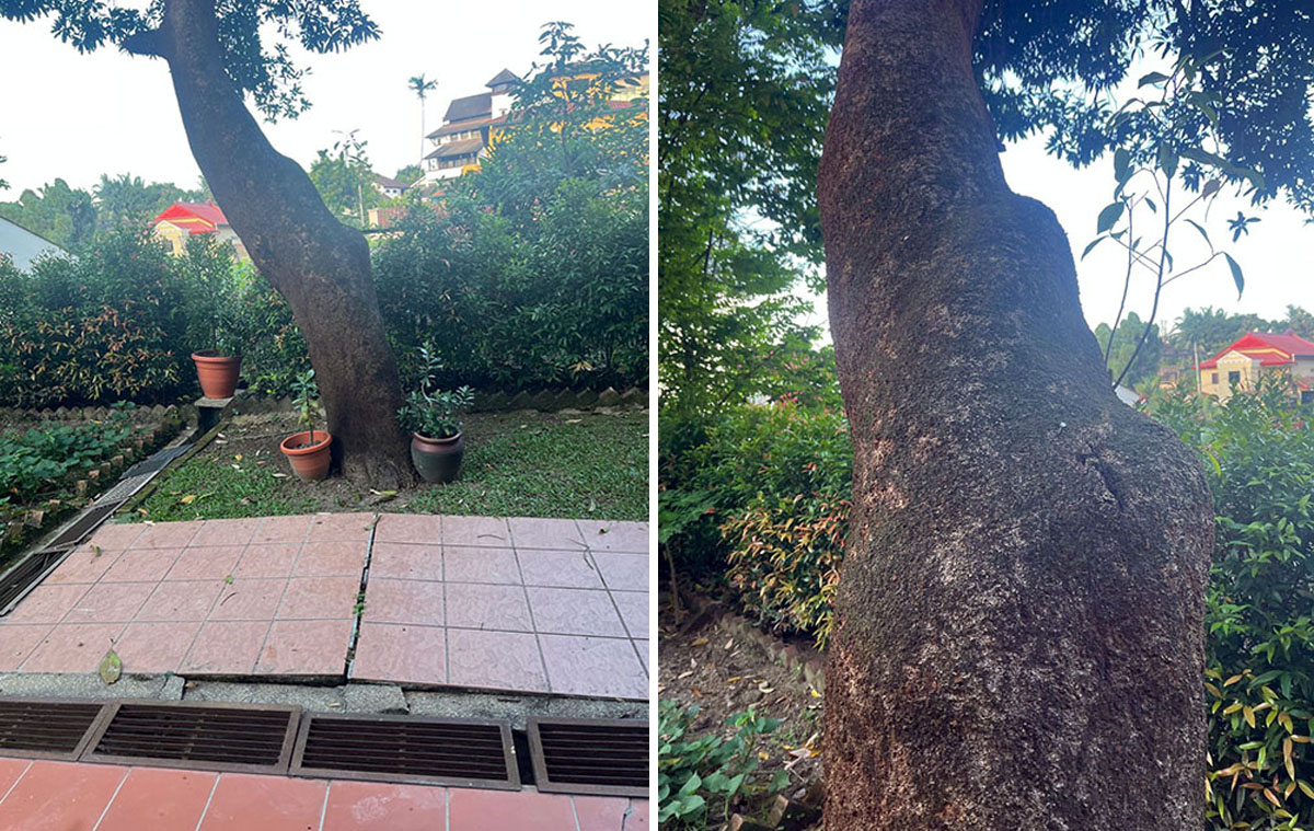 Mustafa then trimmed the peripheral roots leaving the large central root ball intact, and replaced the cracked tiles.